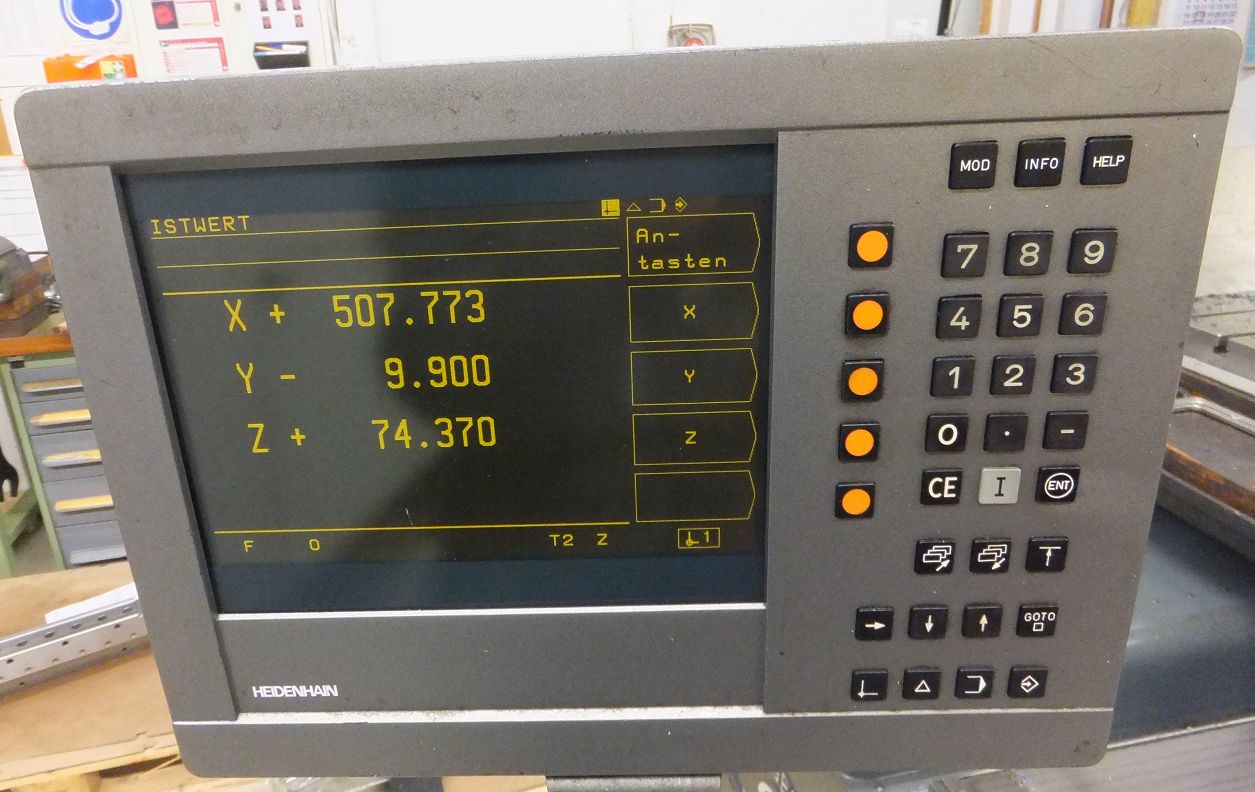 Ausstattung: Heidenhain 3-Achsen Digitalanzeige Lochstreifen-Programmsteuerung möglich Kühlmitteleinrichtung Reichhaltiges Zubehör